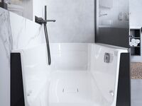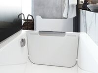 Weltweit die erste barrierefreie Dusche mit Badewanne. Keine Kompromisse mehr, denn wenn eine kleine Raumspar-Badewanne in das kleine Bad reinpasst, dann passt diese Dusch-Badewannen-Kombination wahrscheinlich auch ins Bad. Dabei bietet sie durchaus viel Platz (bis zu 125cm Bodenlänge) bei wahlweise 150cm oder 160cm Wannenlänge. Das Schott ist eine geschlossene Trennwand, die absolut dicht ist und das Badewasser zuverlässig in der Wanne hält. Die Dichtung des Schott ist durchgehend und ein zusätzlicher Sicherheitsmechanismus verhindert das versehentliche Öffnen des Schotts während sich noch Wasser in der Wanne befindet. Dabei ist das Schott bodentief angebracht, sodass es keine Treppenstufe oder anderweitige Barriere gibt, die das Einsteigen erschwert. Somit hat man eine bodentiefe Dusche und eine Badewanne in einem vereint.